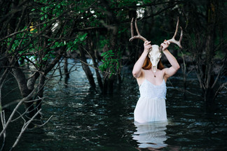 After months of planning and location scouting, the deer skull photo shoot finally happened. My model and I spent about 6 months planning this shoot and waiting for the weather to turn in our favor. We ended up choosing a spot on the bank of Sturgeon Lake on Sauvie Island and driving out around sunset. We rented the deer skull from an interesting and somewhat strangely smelling shop called Artistic Taxidermy, which gave me a good deal on the rental price. Overall, this shoot was a lot of fun and my model was awesome (even when, despite her multiple warnings, I got my car keys wet and stranded us for a few hours).